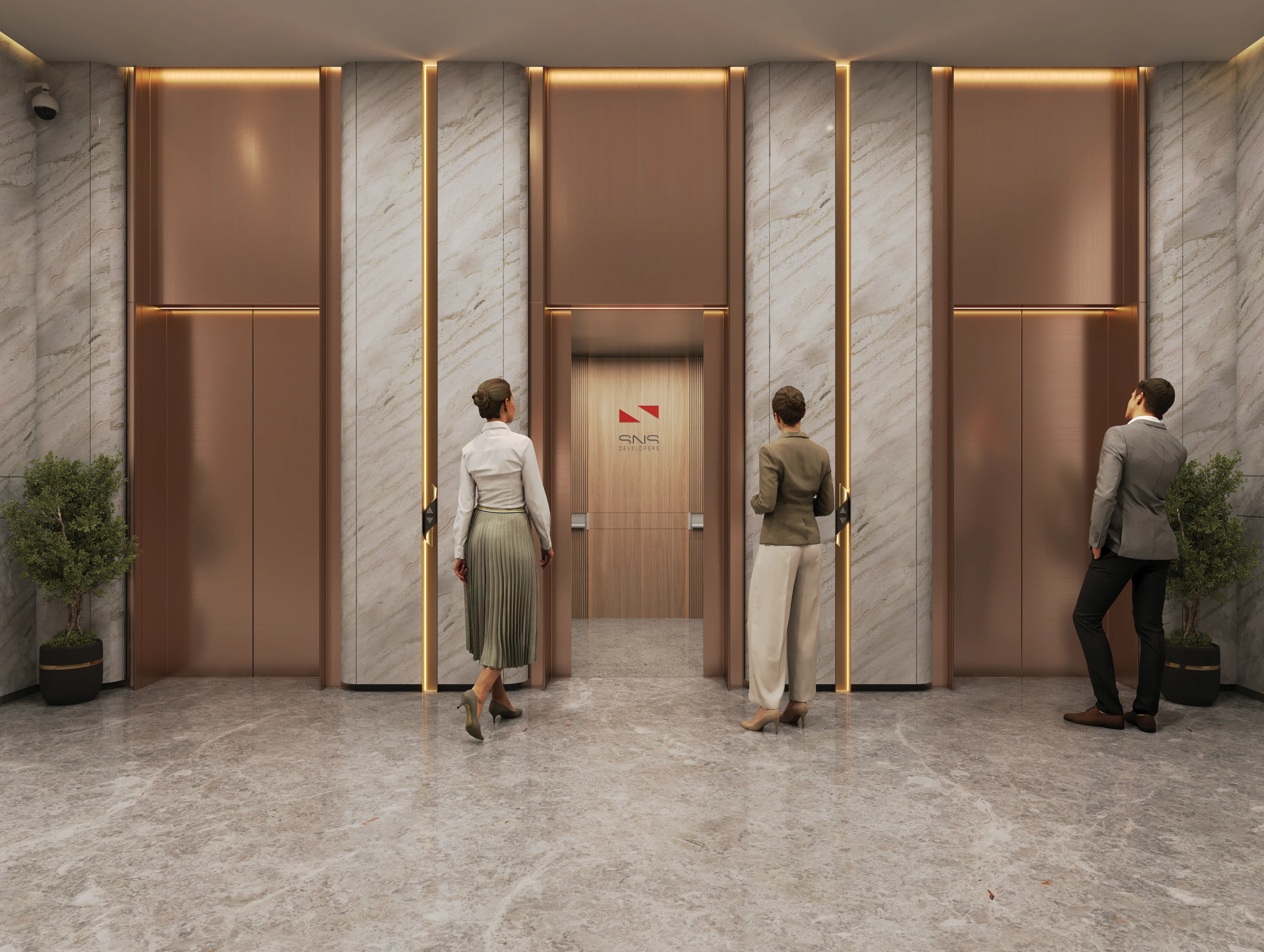 - Elevator Lobbies with premium quality vitrified tile/granite/ marble wall cladding.